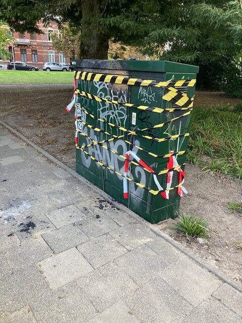 De fontein onder de vernieuwde vesting wordt bediend vanuit een elektriciteitskast. Die brandde uit. Voorlopig zal de fontein niet spuiten.