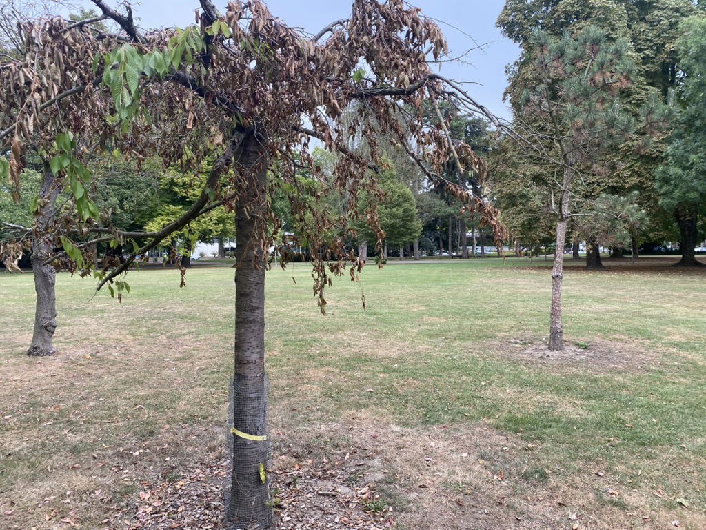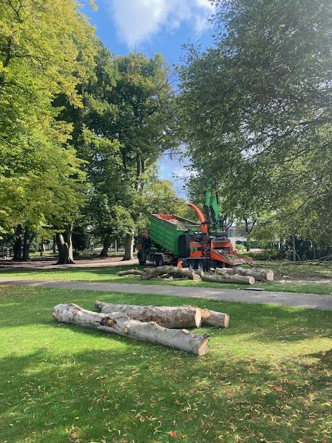 In het stadspark werd een dode boom in een paar uur tot snippers en stammen.