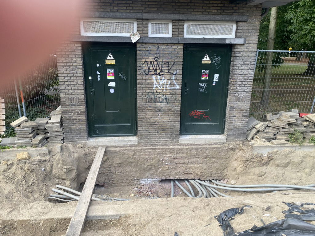 Aan het Henri Hermanspark werd een tijdelijk stroomhuisje geplaatst. Er werd gegraven. Er werden dikke kabels gelegd. Het stroomhuisje werd heringericht. De tijdelijke kabels naar dit huisje verlegd. Straks zien we er niets meer van. Zo levert het Jekerkwartier een eigen bijdrage aan de stroomtransitie.